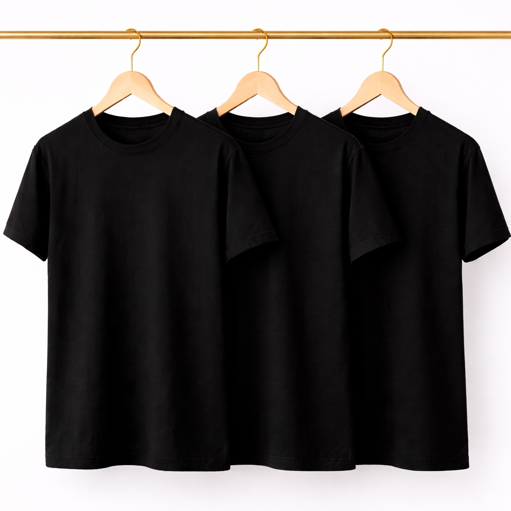 Kit 3 Camisetas Masculina Lisa Preta