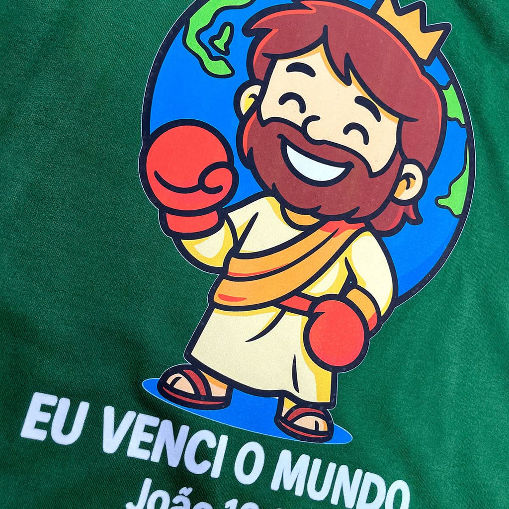 T-Shirt Infantil Verde Eu Venci o Mundo