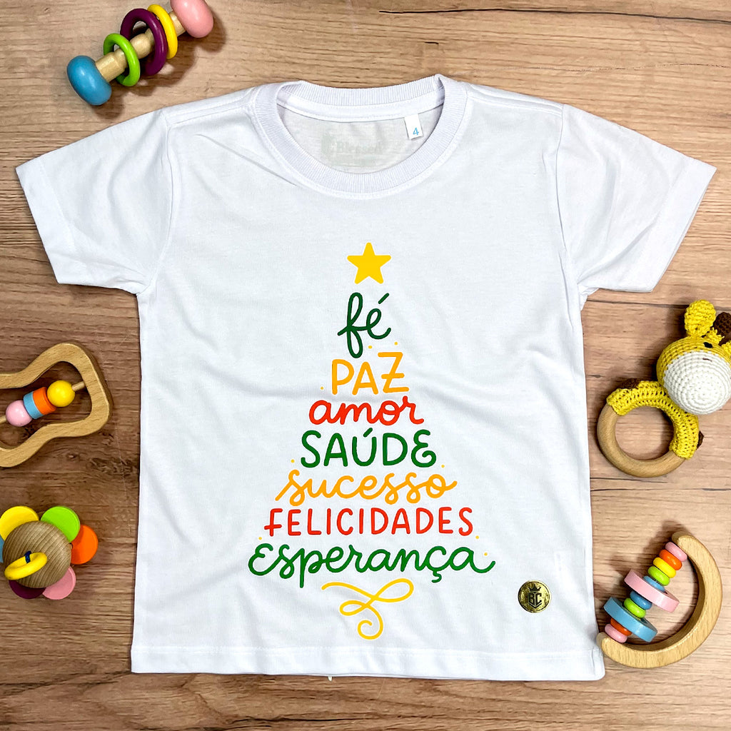 T-Shirt Infantil Branca Árvore Fé Paz Colors