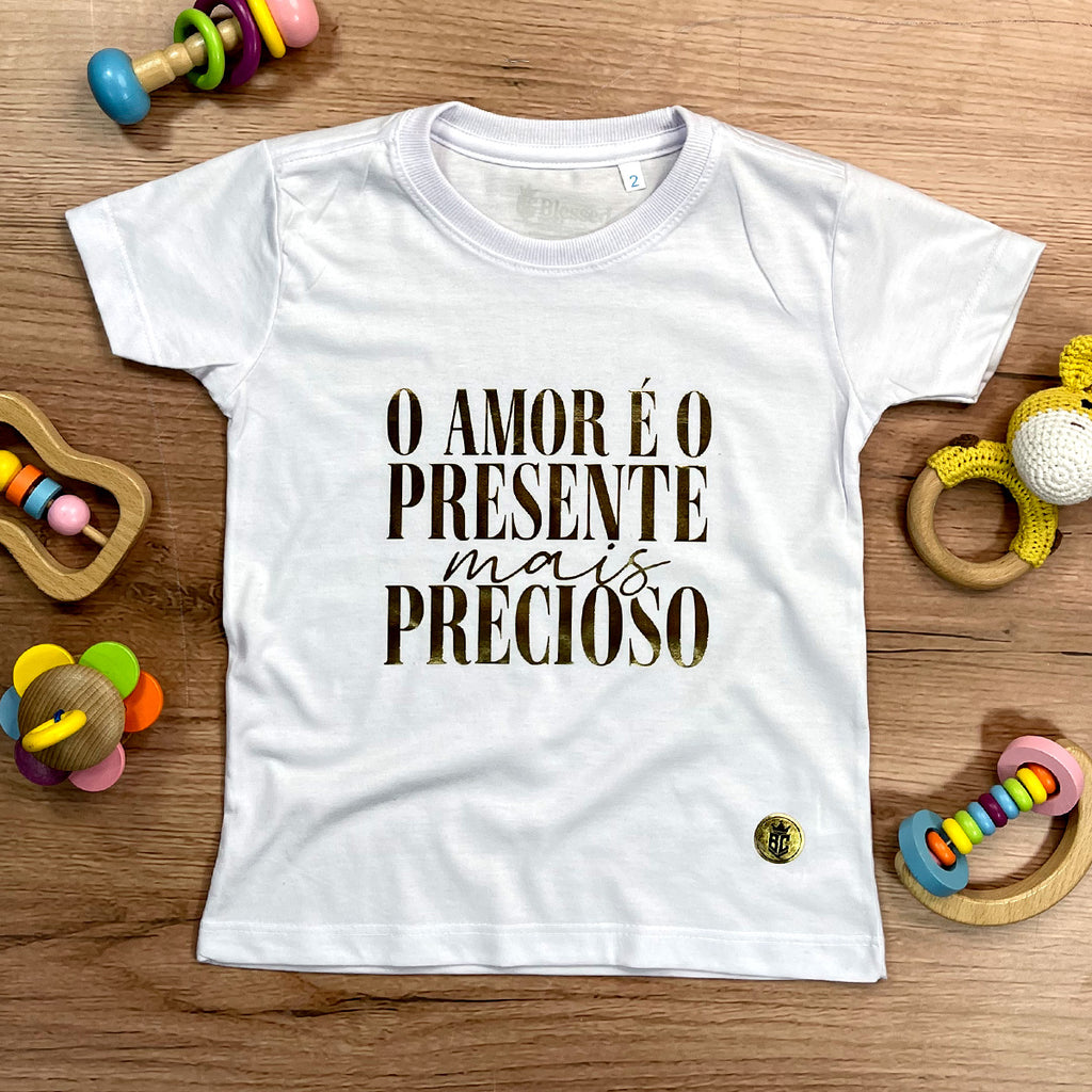 T-Shirt Infantil Branca O Amor é o Presente Dourado
