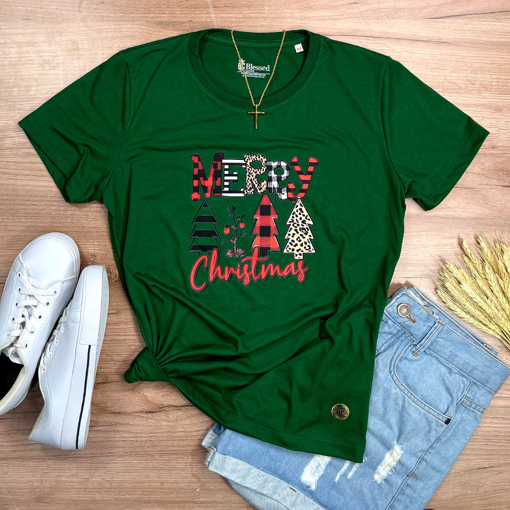Camiseta Feminina Verde Merry Christmas Árvore