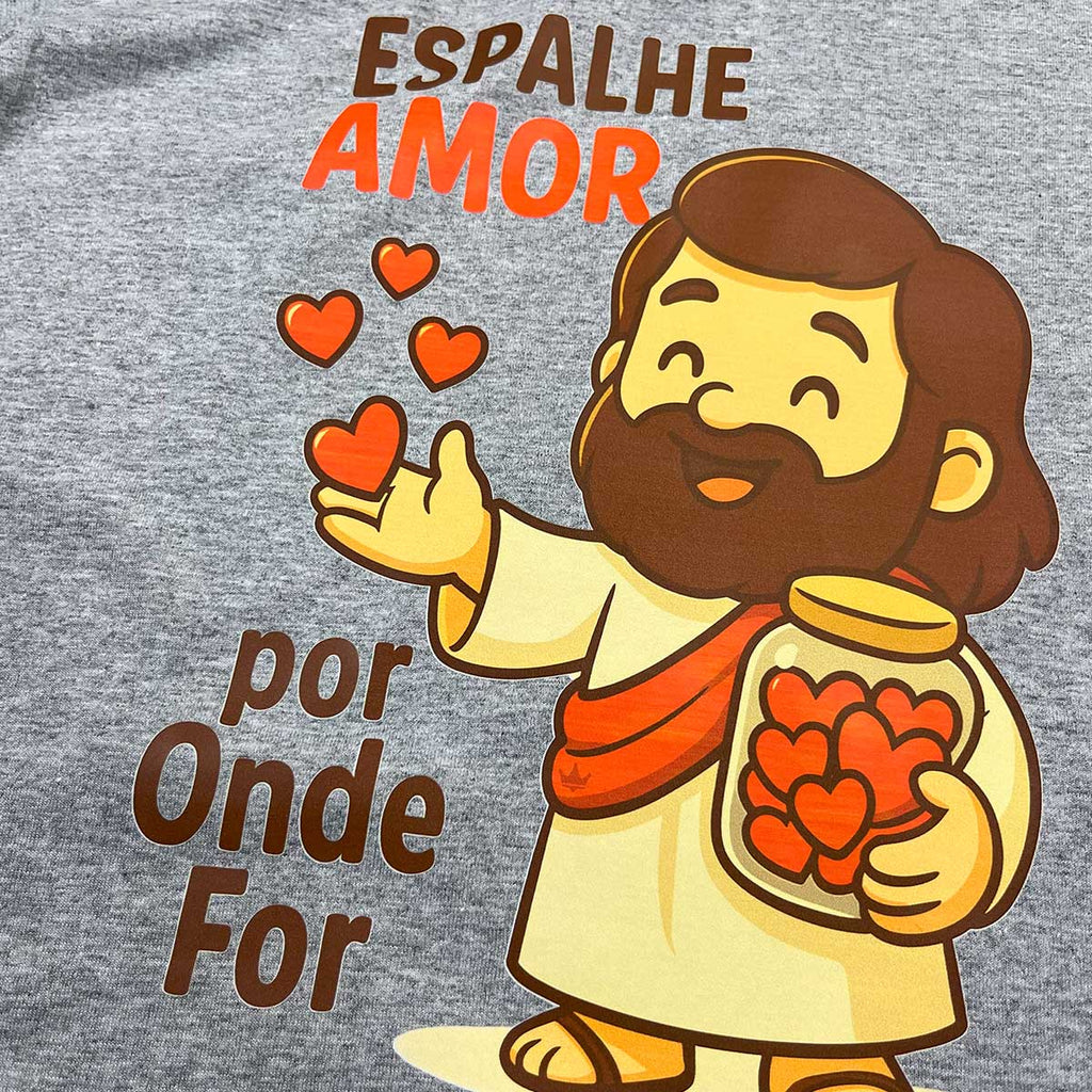 T-Shirt Infantil Cinza Espalhe Amor Por Onde For