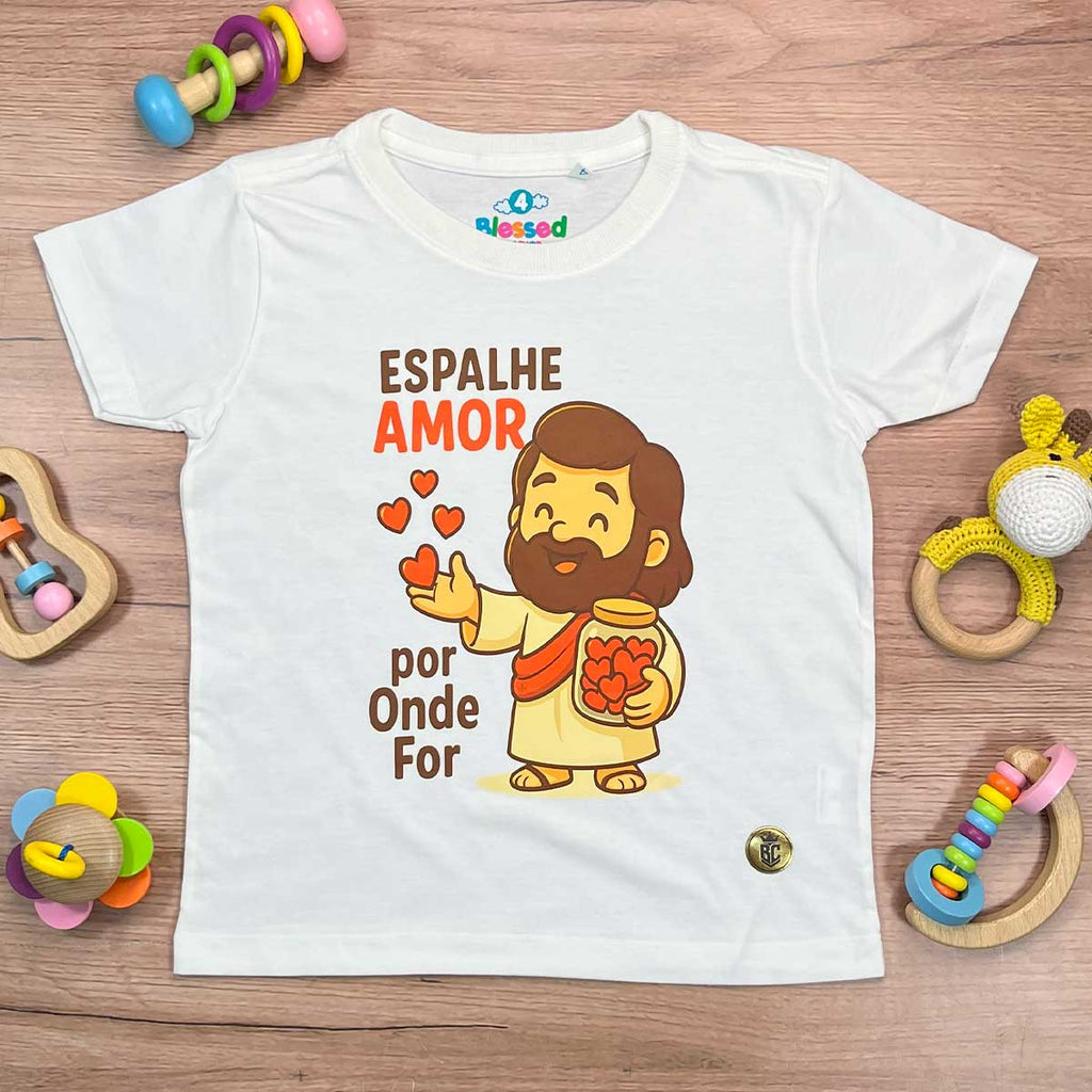 T-Shirt Infantil Off White Espalhe Amor Por Onde For