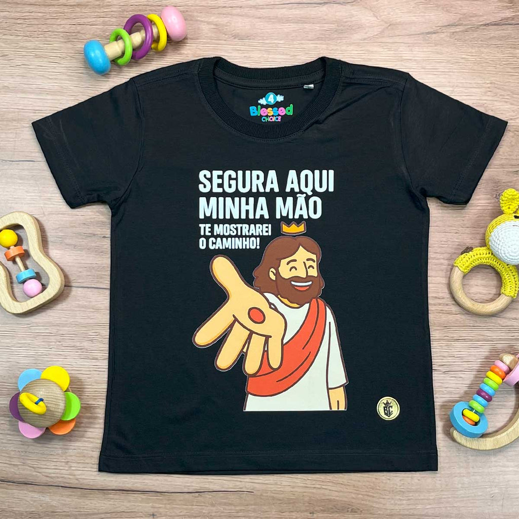 T-Shirt Infantil Preta Segura Aqui Minha Mão