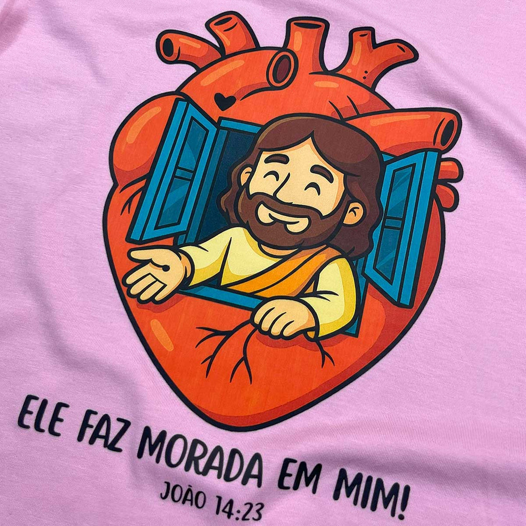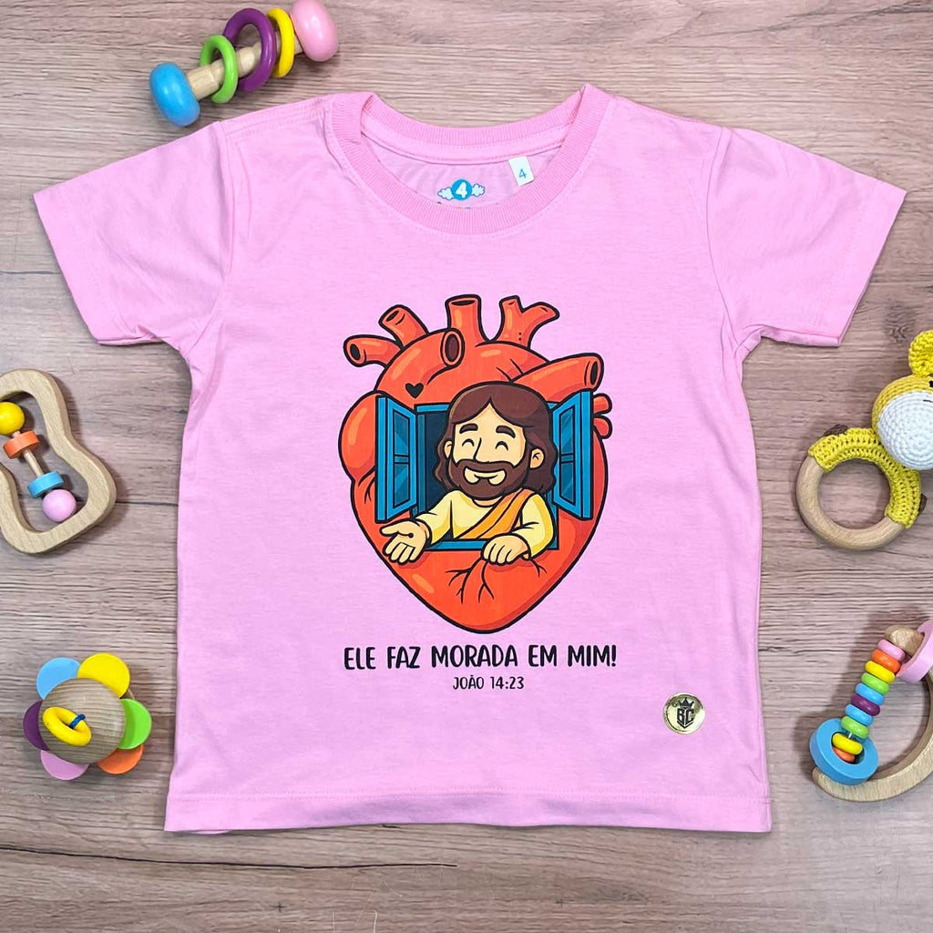 T-Shirt Infantil Rosa Ele Faz Morada Em Mim!
