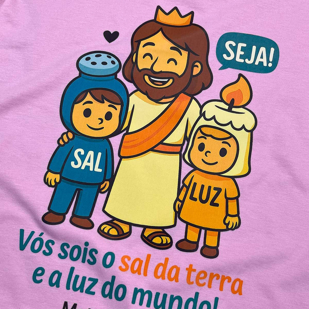 T-Shirt Infantil Rosa Seja Sal e Luz