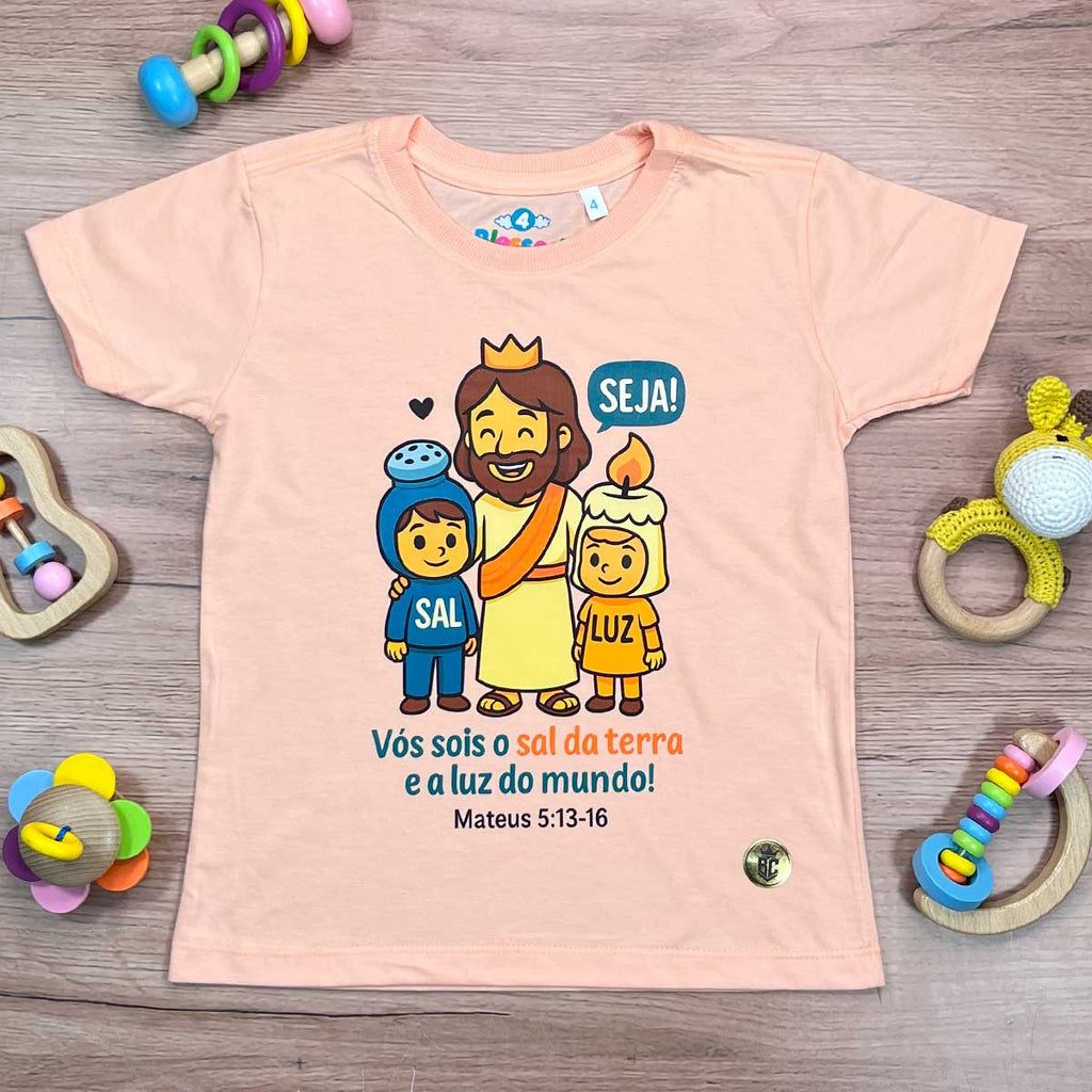 T-Shirt Infantil Salmão Seja Sal e Luz