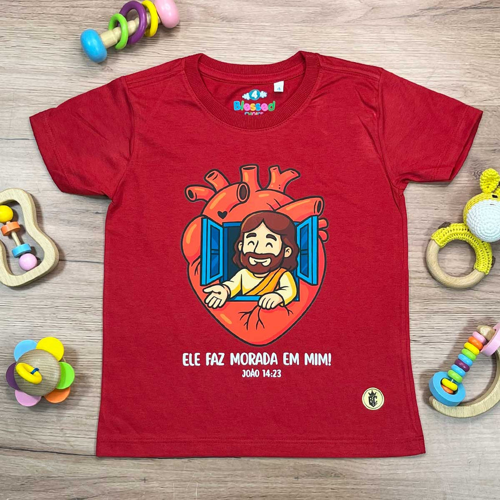 T-Shirt Infantil Vermelha Ele Faz Morada Em Mim!