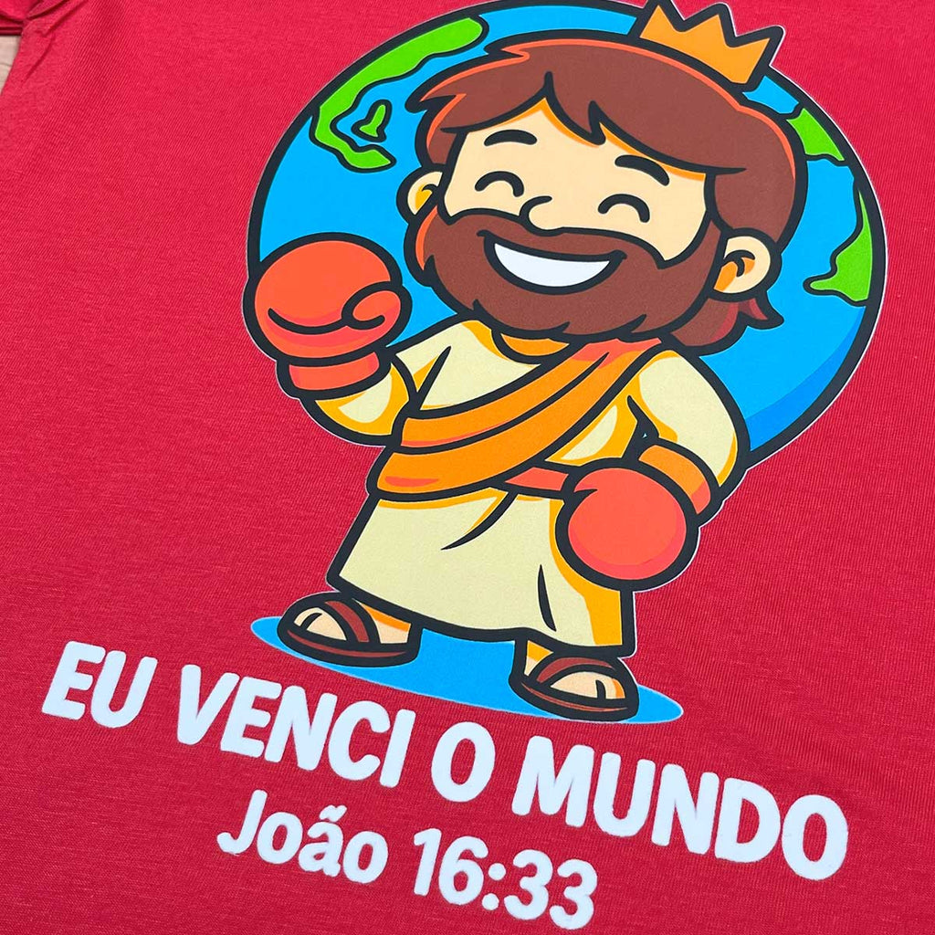 T-Shirt Infantil Vermelha Eu Venci o Mundo